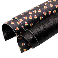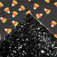 Candy Corn with Black Chunky Glitter Double Sided Faux Leather Sheet