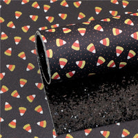Double Sided: Candy Corn on Black with Black Chunky Glitter on the other side.