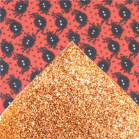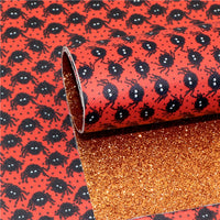 Spiders with Orange Fine Glitter Double Sided Faux Leather Sheet