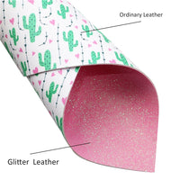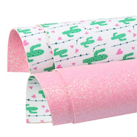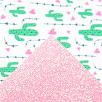 Cactus on Pink Fine Glitter Double Sided Faux Leather Sheet